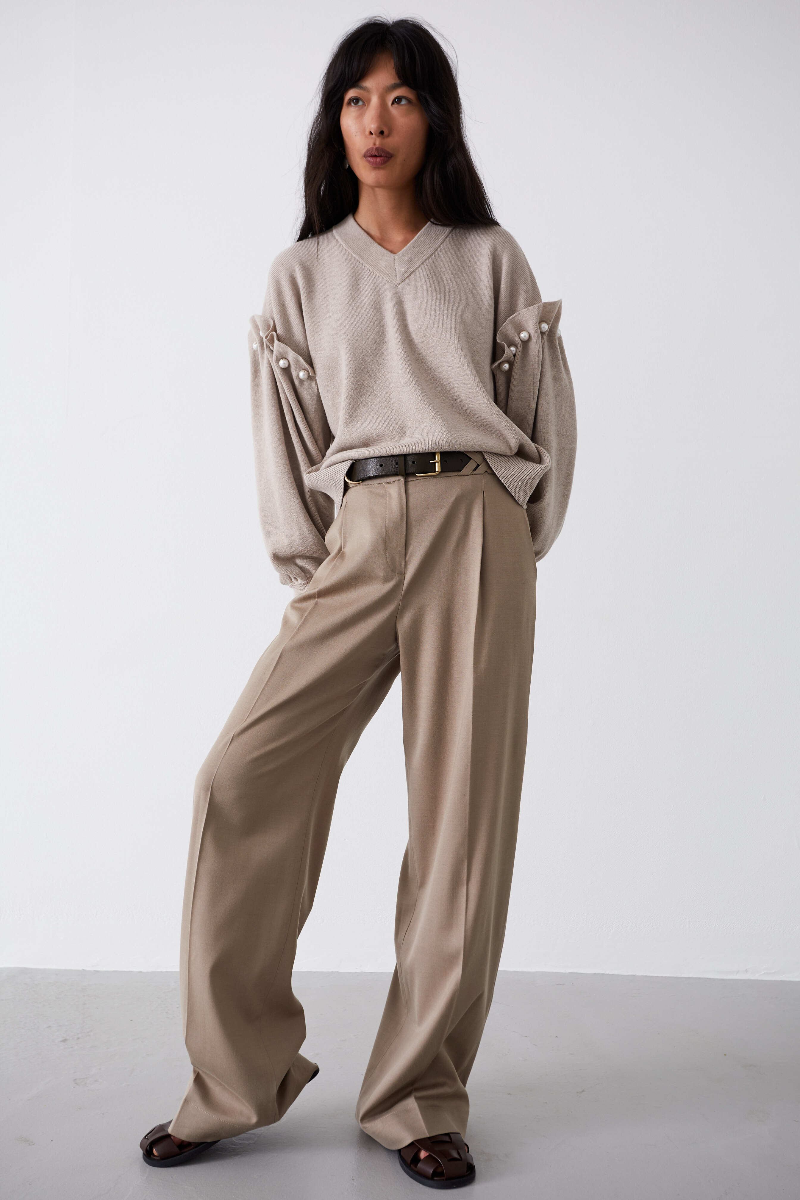 RWS(Responsible Wool Standard)認証のウールを使用したVネックニット。
